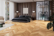 Boden mit wenigen Holzmerkmalen mit einer exklusiven Breite von 180 mm, der durch die 4-seitiges Fasen veredelt wurde. Dieses Parkett wurde matt lackiert.