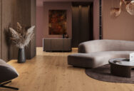 Klassisches Fischgrät in einem raffinierten Gold- und warmen Braunfarbton mit einer exklusiven Breite von 180 mm. Der Boden wurde dem Bürsten und Kantenfasen unterzogen. Mit Naturöl behandelt.