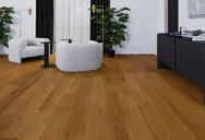 Ein gebleichter Eichenboden, der Langlebigkeit und zeitloses Design vereint. Gebürstete Dielen betonen die natürliche Holzmaserung und verleihen der Oberfläche Tiefe und einen einzigartigen Charakter.