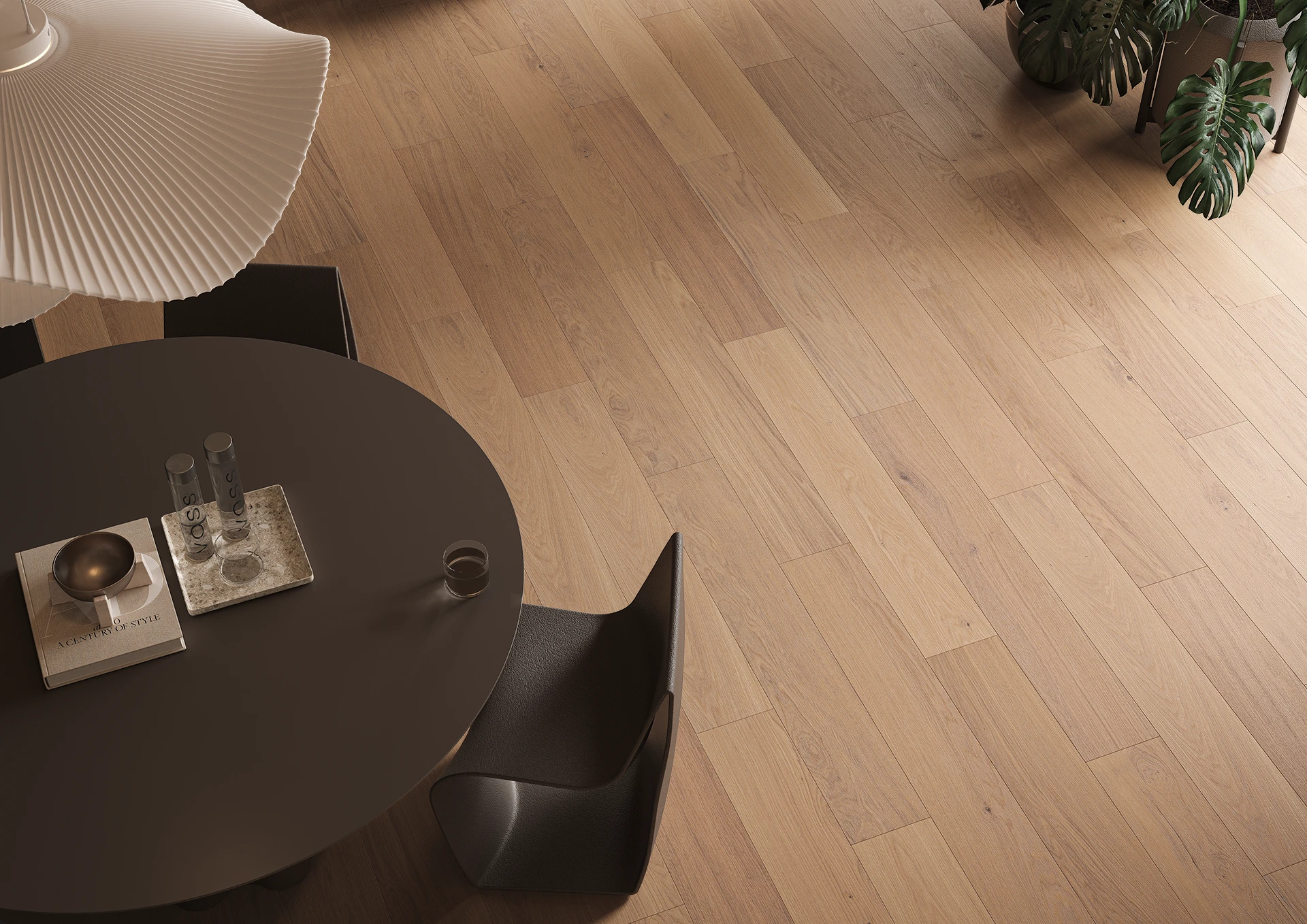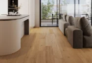 Ein leicht gekalkter Eichenboden vereint dezente Eleganz mit natürlichem Stil. Die zarte Kalkung hebt die Maserung hervor, hellt das Holz auf und verleiht dem Raum eine frische, harmonische Atmosphäre.