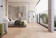 Ein Eichenparkettboden mit dezent hervorgehobenen Holzmerkmalen. Die gebürstete Oberfläche betont die Maserung wunderschön und verleiht dem Boden einen authentischen Charakter und eine edle Optik.