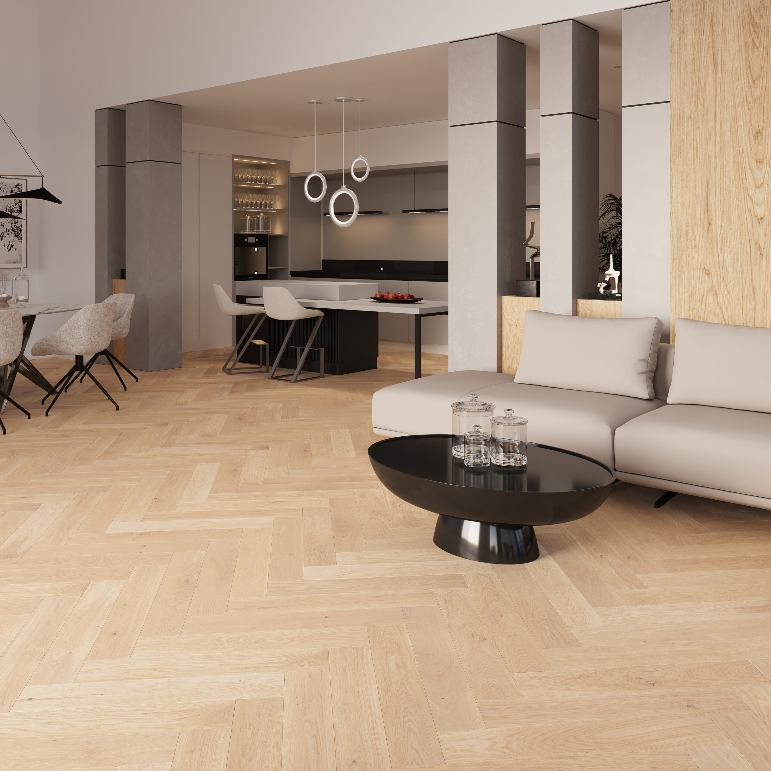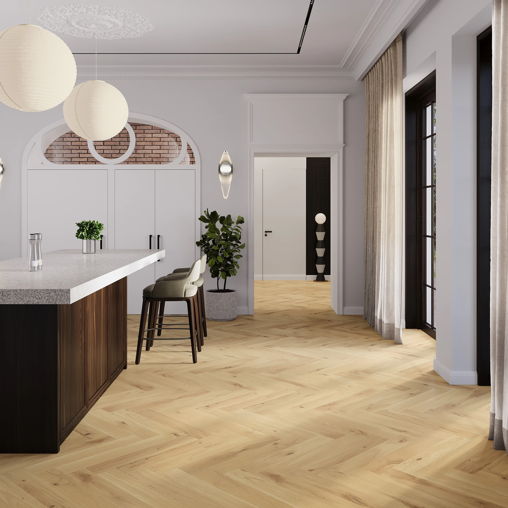Der Boden aus Naturdielen verleiht dem Innenraum Charakter. Es ist schön, gesundheitsfreundlich und fühlt sich angenehm an. Die Barlinek-Dielen sind komplett aus Echtholz gefertigt und haben eine durchdachte Struktur, die ihre Langlebigkeit und hohe Formstabilität gewährleistet. Jede Diele von Barlinek besteht aus drei Schichten. Die Unter- und Mittellage besteht aus kreuzverleimtem Nadelholz, die Decklage aus sorgfältig ausgewähltem Hartholz.